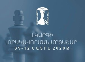 Ս/թ. մայիսի 5-ից 12-ը Հայաստանի շախմատի ակադեմիան «Շախմատի ակադեմիայի ակումբի» հետ համատեղ կազմակերպում են ազգային և միջազգային վարկանիշի հաշվարկով մրցաշար։