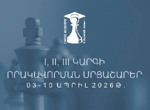 Ս/թ. ապրիլի 3-ից 10-ը Հայաստանի շախմատի ակադեմիան, «Շախմատի ակադեմիայի ակումբ»-ի հետ համատեղ, կազմակերպում է III, II և I կարգի որակավորման մրցաշարեր: