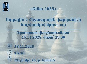 Ս/թ. նոյեմբերի 18-27-ը Հայաստանի շախմատի ակադեմիան կազմակերպում է  ազգային և միջազգային վարկանիշի հաշվարկով մրցաշար։