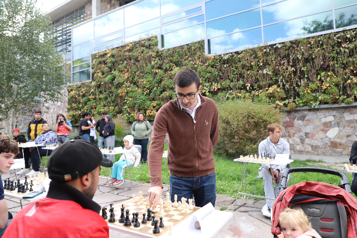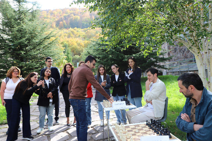 2025-10-11Today, on October 11, as part of the Olympiad events at UWC Dilijan, Grandmaster Manuel Petrosyan, the World Chess Olympiad silver medalist, held a simultaneous game against around 30 Armenian and international chess players.